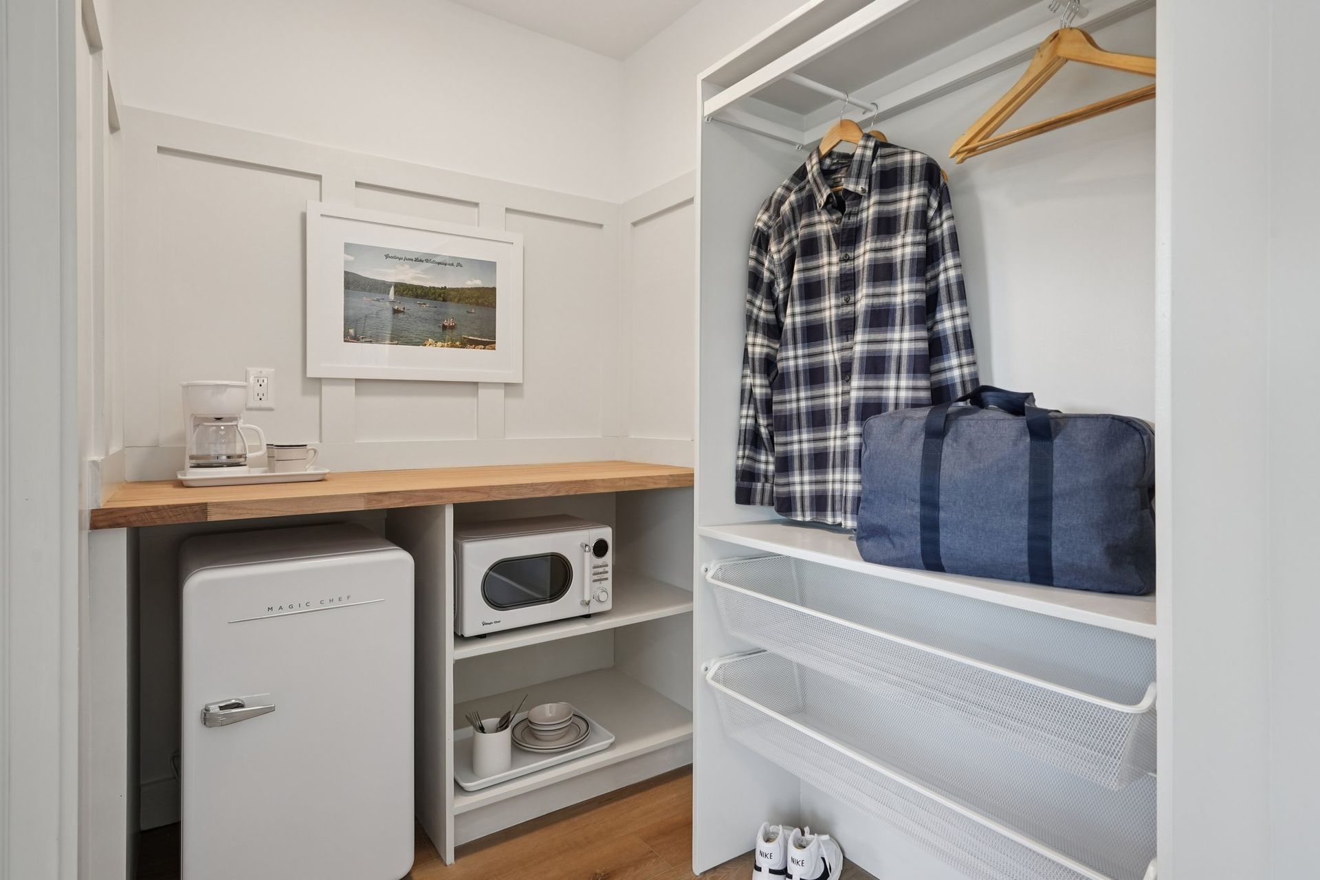 Styled in calming soft gray tones, our Gray King Room feels both ethereal and expansive. This simple yet elevated retreat is designed for serene escapes, making it a perfect sanctuary for a couple or solo traveler. The room's focal point is the peaceful, uninterrupted view of Lake Moc-A-Tek, inviting quiet moments of contemplation and relaxation.
